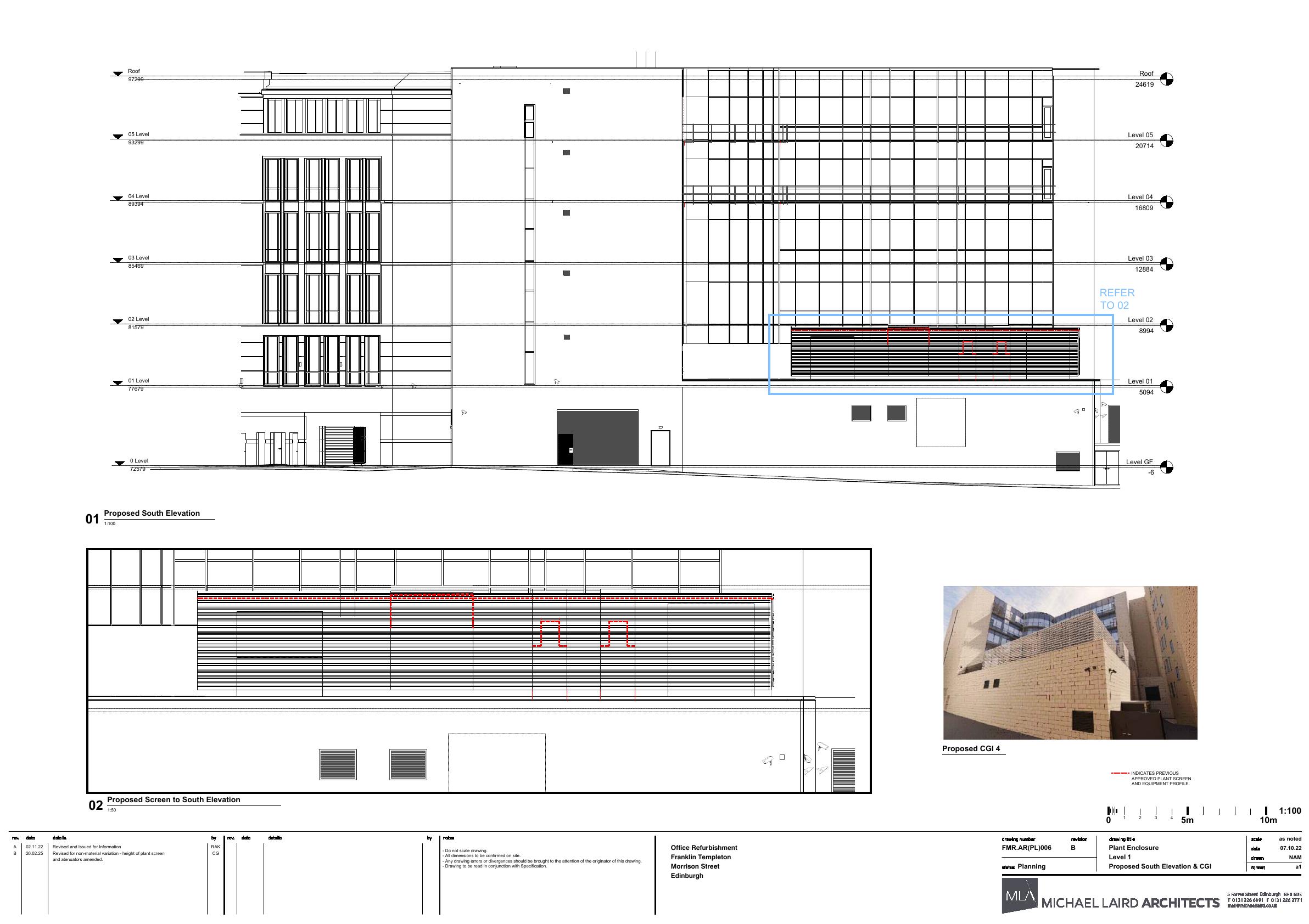 Non Material Variation - Acoustic screening and plant attenuators heigth increased as highlighted in red on the submitted amended plans.