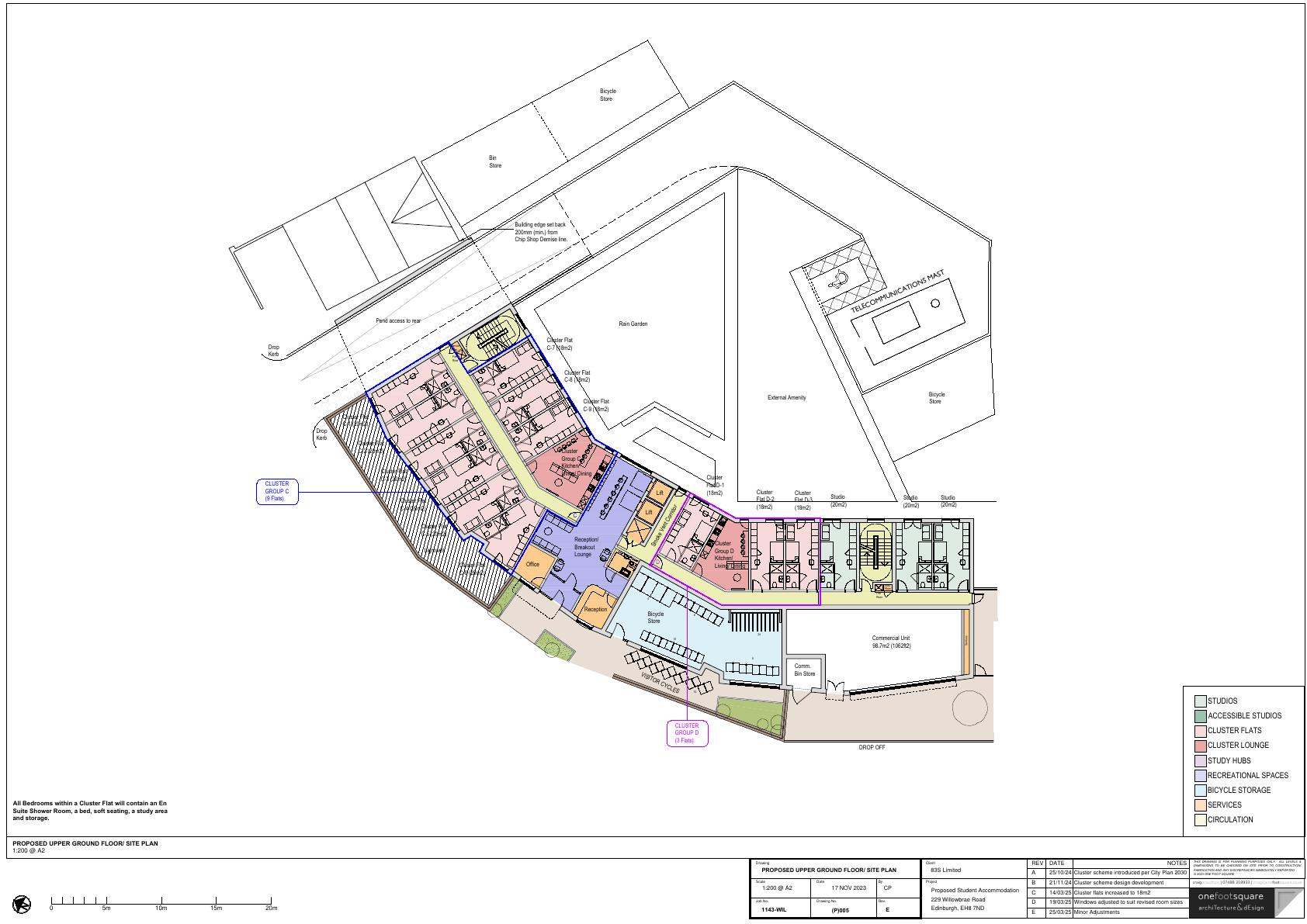 Minor internal re-plan of approved 5-storey student accommodation, adjusting cluster flats, studios and amenity areas; no change to elevations, height or site footprint. .
