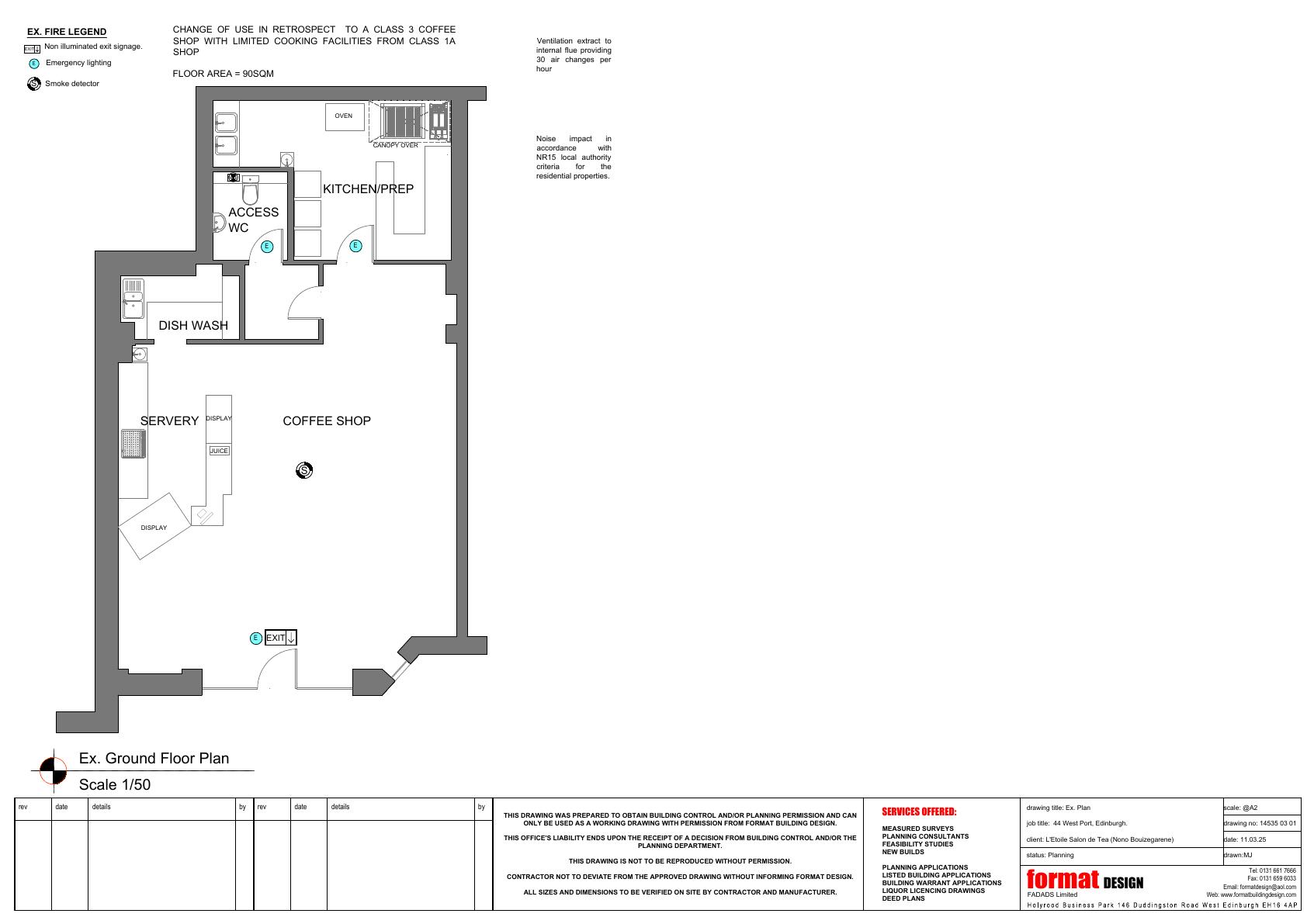 44 West Port unit reclassified to 95 sqm Class 3 coffee shop; adds servery, prep kitchen, internal flue and accessible WC, with no external alterationschanges remain purely internal.