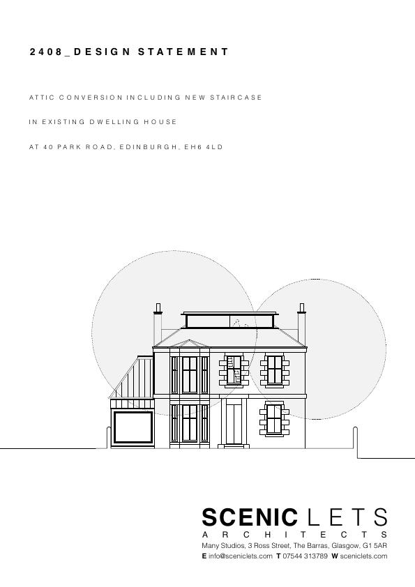 Loft of the detached house at 40 Park Road becomes habitable space with new internal stair and discreet roof dormer; footprint unchanged, finishes in keeping with existing sandstone. .