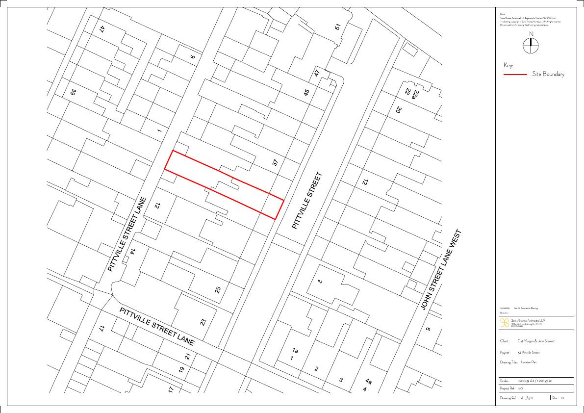 Single-storey garden room for ancillary living space in the long rear garden of 33 Pittville Street, screened by existing boundary walls. .
