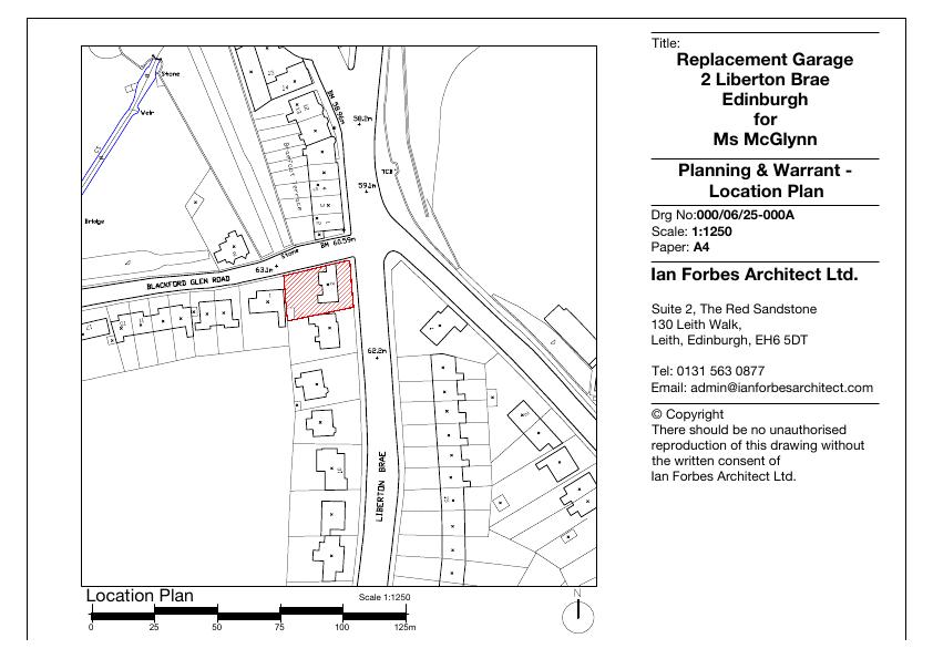 Single-storey timber-clad garage with mono-pitch roof replacing existing outbuilding at 2 Liberton Brae; similar footprint, no alterations to house or trees. .