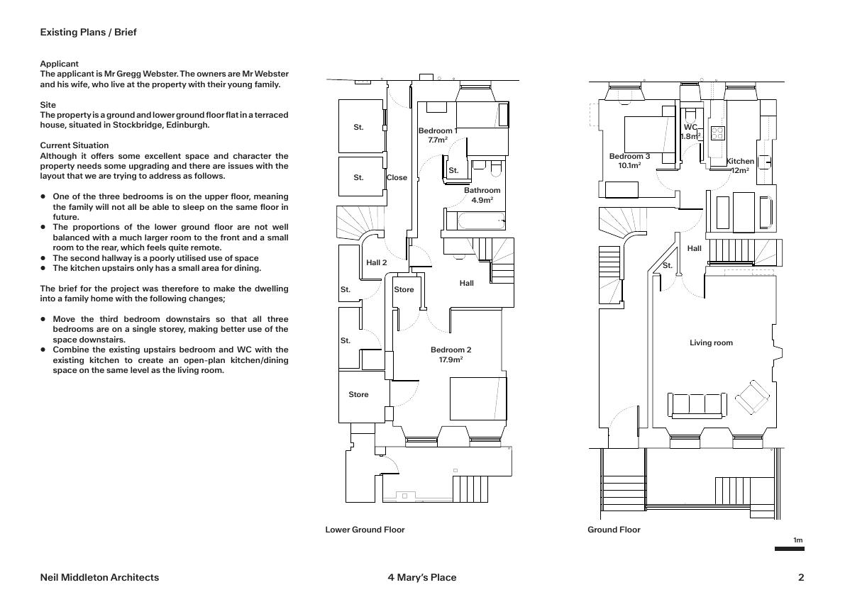4 Marys Place flat reshapes ground floorbedroom moved, larger open-plan kitchen-diner created, original front door reinstated, one rear window cill lowered; no extension or demolition. .