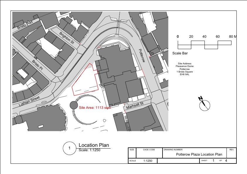 Annual Fringe hub at Potterrow Plaza: staging for several pop-up performance domes, bars and food units over 1,113 sqm, approved to reappear each summer for at least three years.