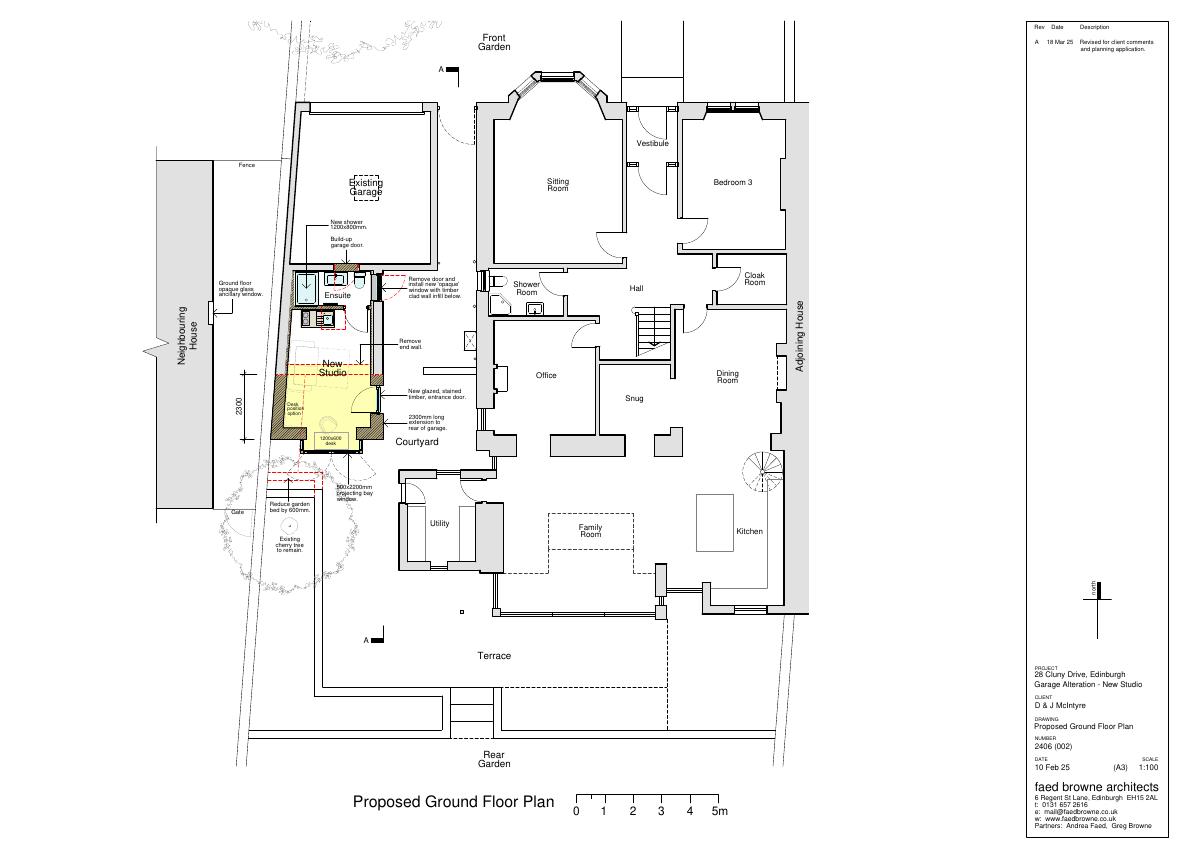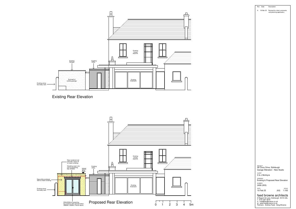 Extension to store at rear of garage to form studio space.