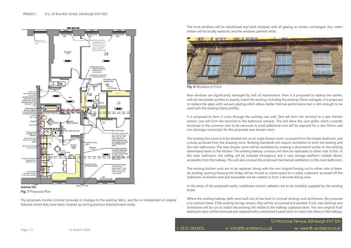 Listed New Town flat: refurbish sash windows, replace decayed rear sashes, add en-suite and extra shower room, rework kitchen, restore hallway by stripping non-original linings; no external enlargement. .