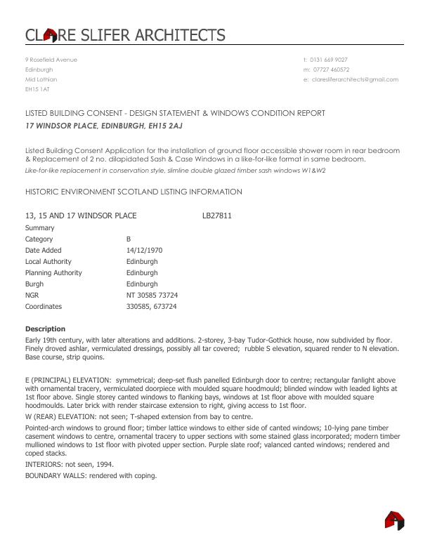 At 17 Windsor Place, a Category B listed home will add a lightweight partitioned ground-floor ensuite shower room and swap two damaged sash windows for slimline timber like-for-like replacements. .