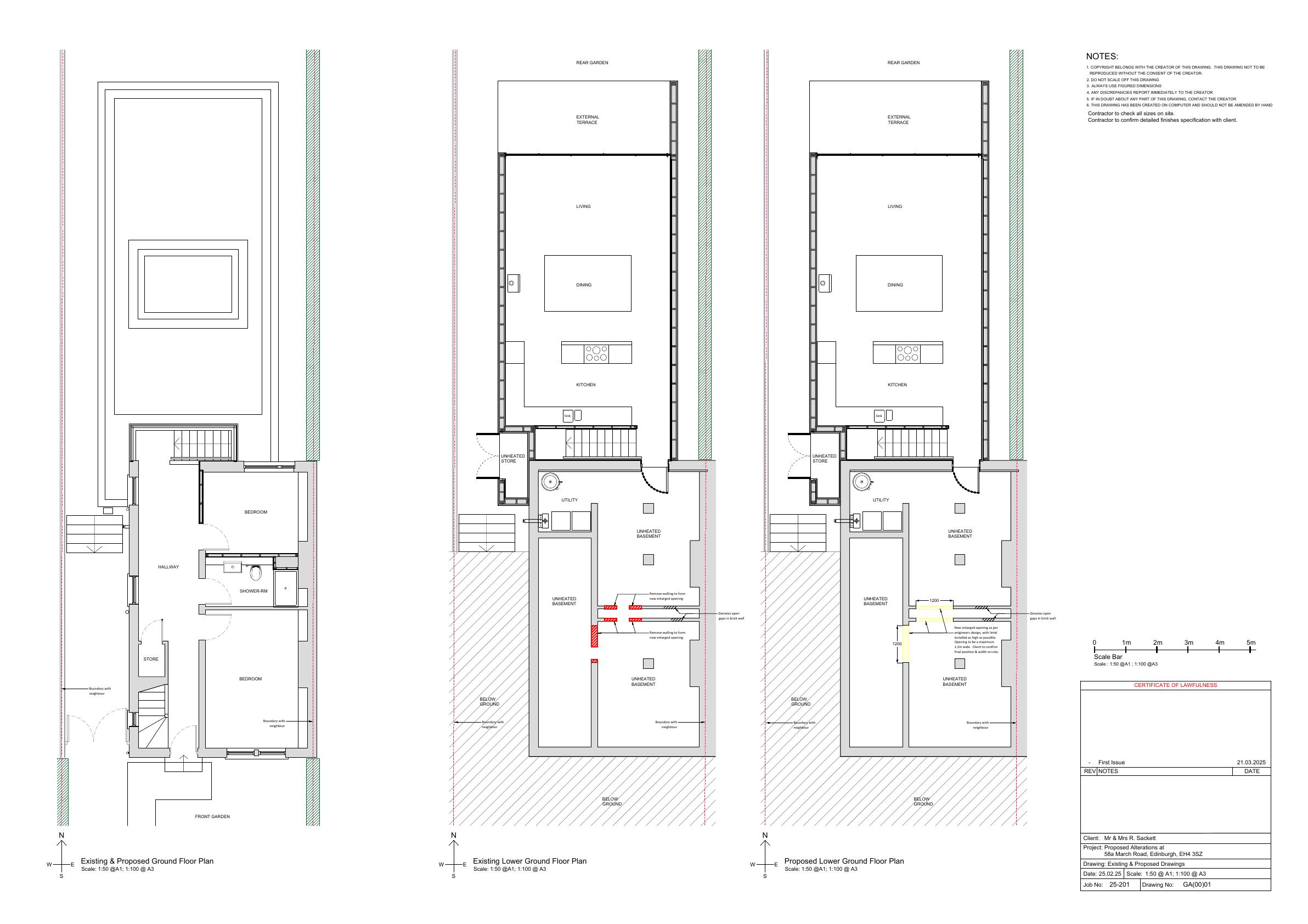 Basement walls at 58A March Rd widened to merge lower-ground rooms into a larger open-plan space; no external works or footprint change. .