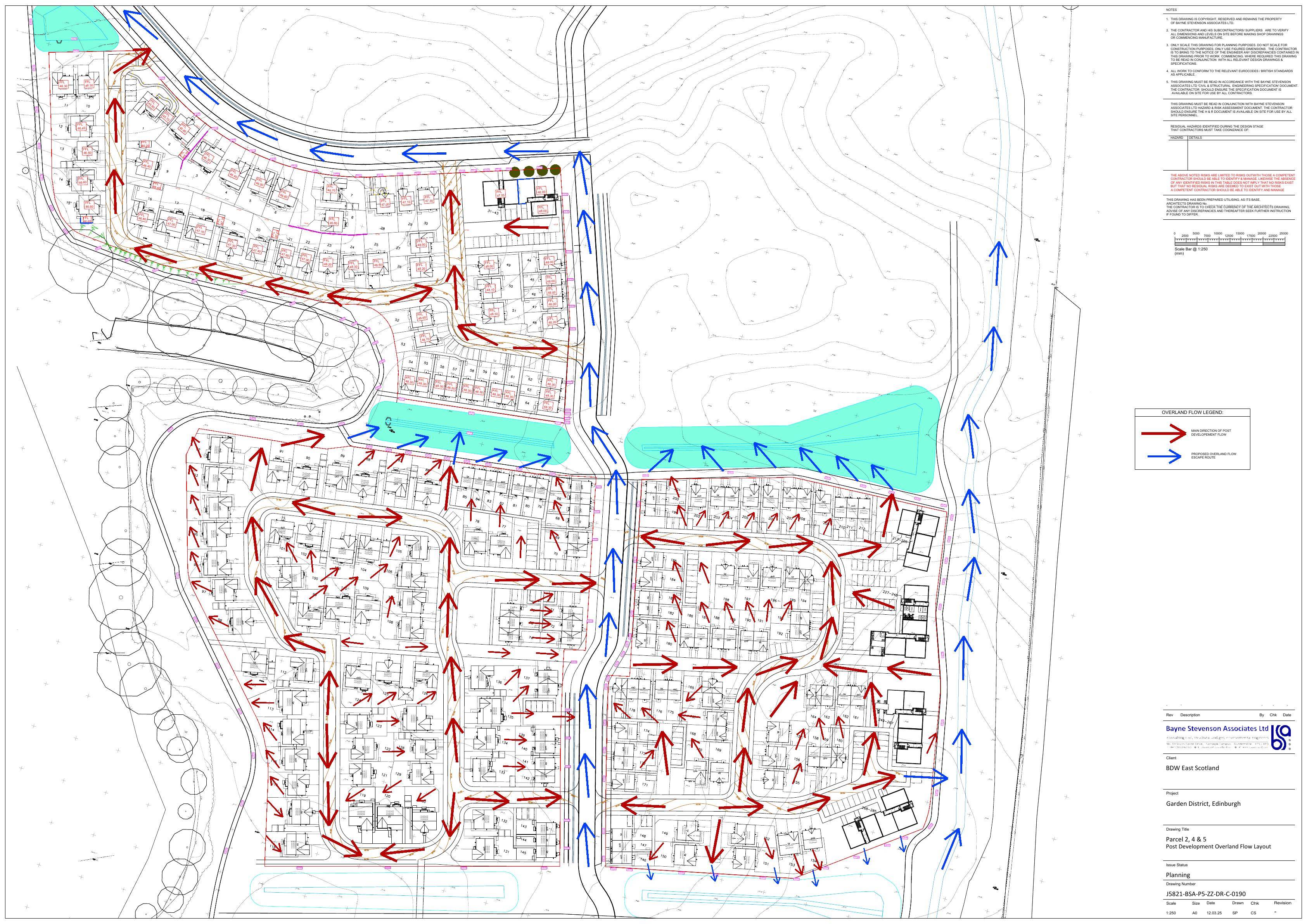 Detailed designs for Redheughs Garden District subsites 2,4 & 5: c.500 homes with streets, SUDS ponds and green corridors over a large west-Edinburgh site, fixing layout, landscaping and drainage. .
