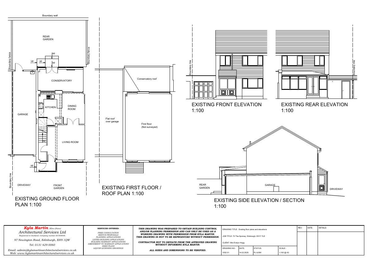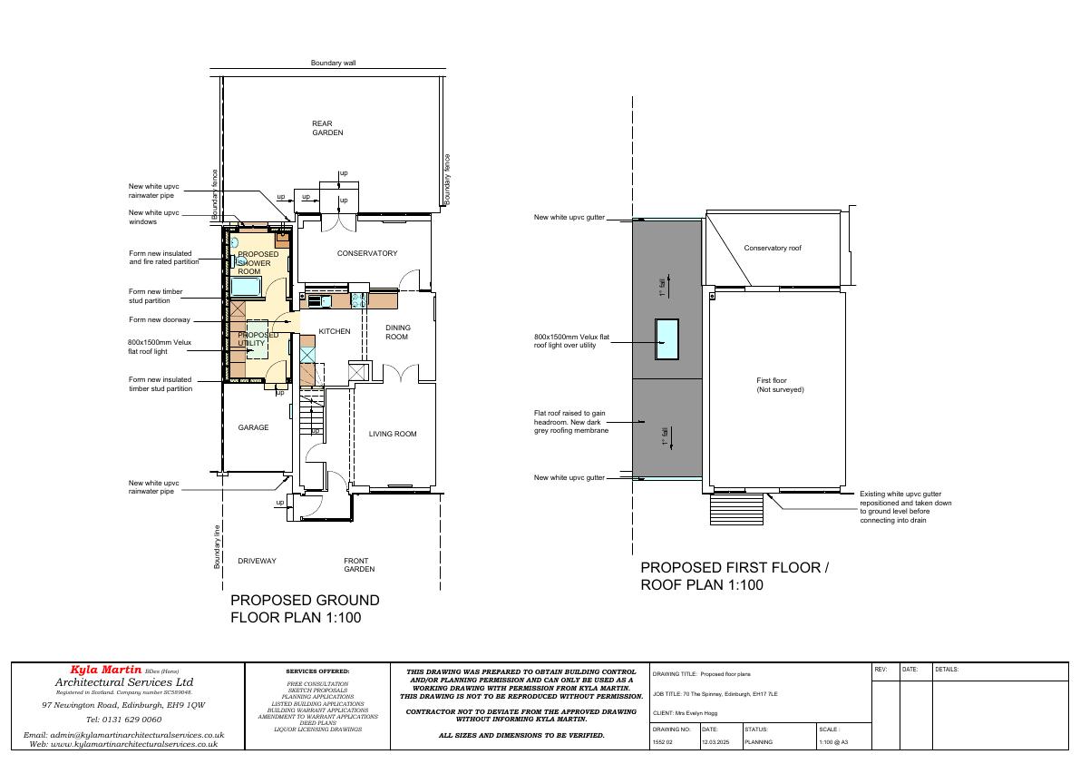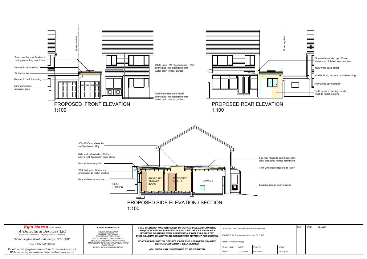 Convert rear of attached garage into utility and shower room, raise flat roof by 150 mm with Velux, block rear door, add small rear window; front garage door retainedno footprint change. .