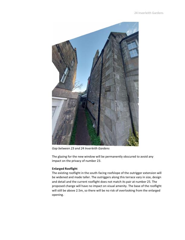 Adds a discreet obscured first-floor side bathroom window and widens existing rear rooflight, improving light without altering building mass or neighbours privacy. .