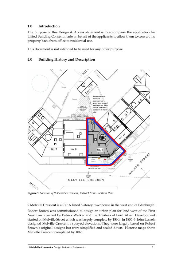 5-storey Cat A townhouse at 9 Melville Crescent reverting from office to single dwelling; reshaped interior for kitchen/bathrooms, upgraded fire doors, like-for-like window replacements.
