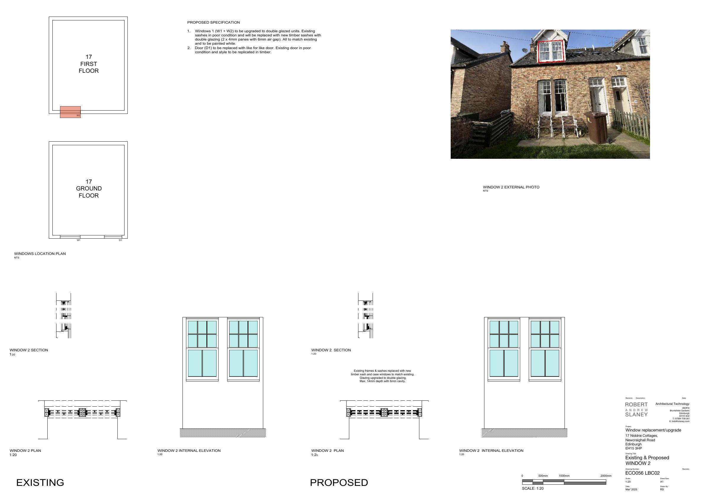 Two timber sash windows upgraded to matching double-glazed units and front door replaced like-for-like at 17 Niddrie Cottages, improving efficiency without altering appearance. .