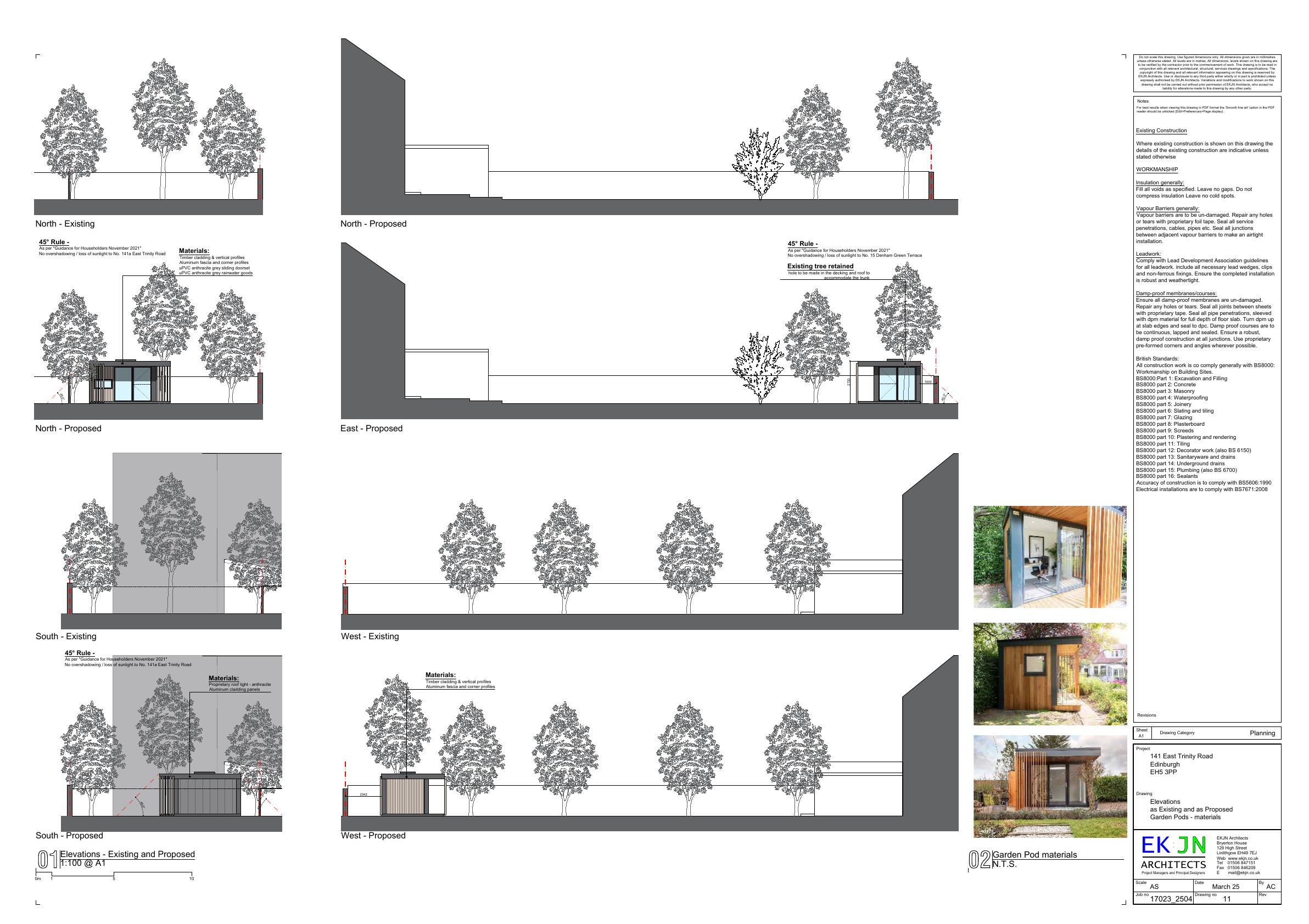 Single-storey timber-clad garden room with glazed frontage tucked at gardens far end; no tree loss, minimal visual impact beyond existing rear boundary. .