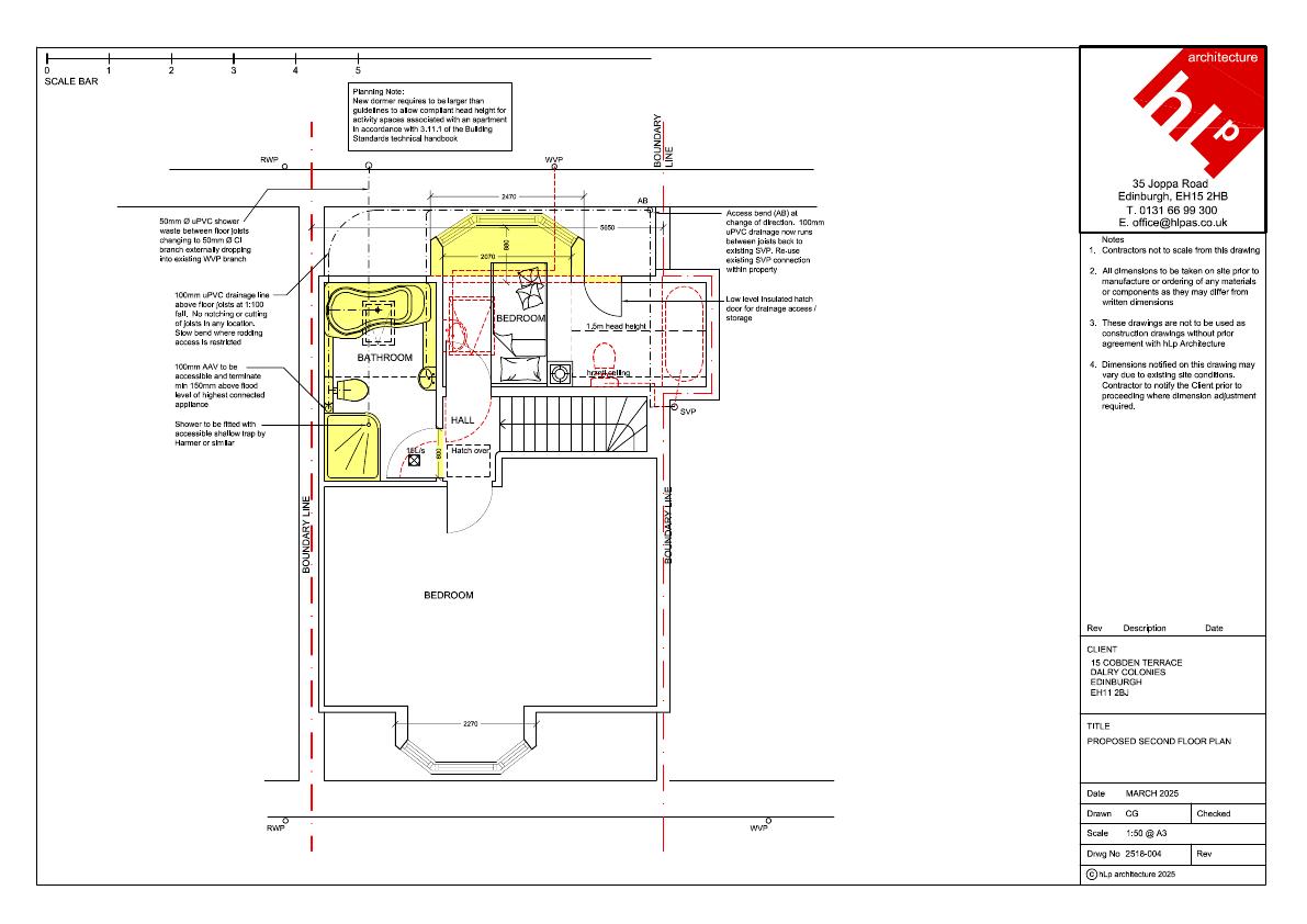 Add rear canted dormer with slate cheeks and timber sash windows, enlarging attic for extra bedroom and bathroom in this mid-terrace colony flat. .