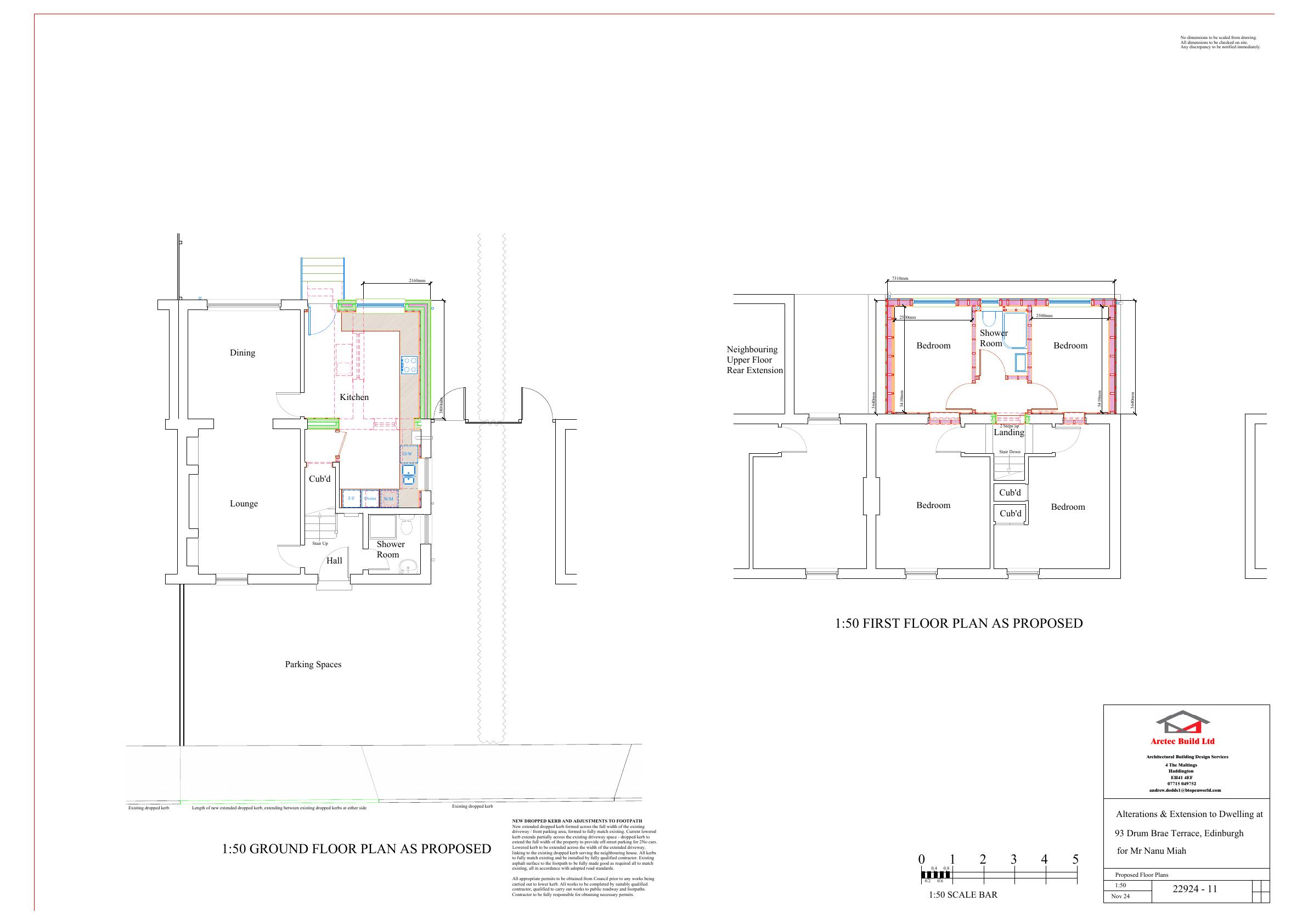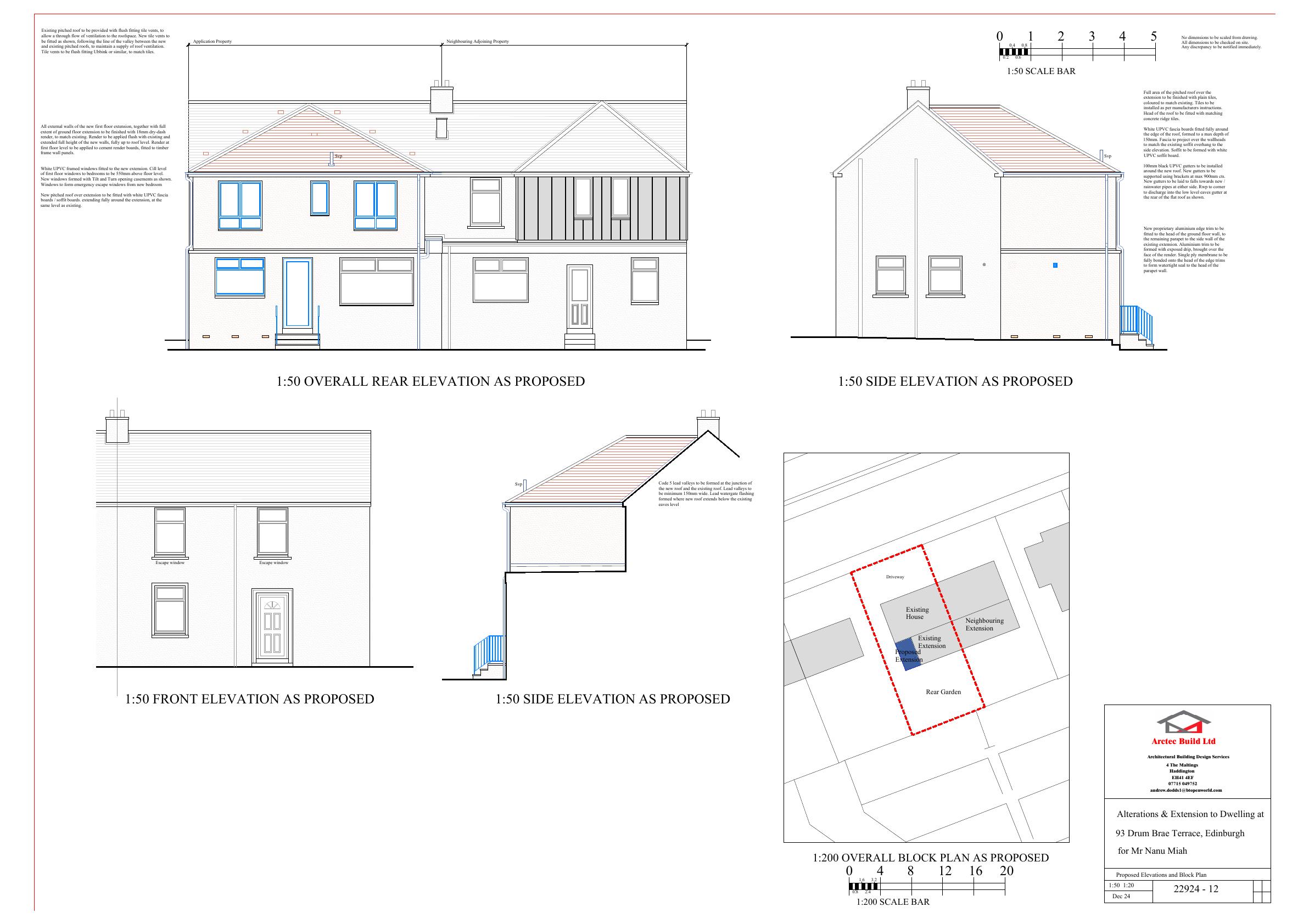 Construction of two storey extension to rear of current house, comprising infill ground floor extension to side of existing flat roof extension, brought in line with gable wall of existing house. Thereafter construct new first floor extension, above the new ground floor extension and existing extension, formed with pitched roof. Form extended dropped kerb to front of house, to provide access to existing parking spaces.