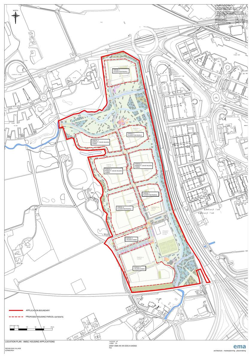 Detailed approval for parcels 1, 3, 6 & 7 of the Redheughs Garden District, fixing layouts, materials, landscaping and tree works for multiple new housing blocks and connecting green routes. .