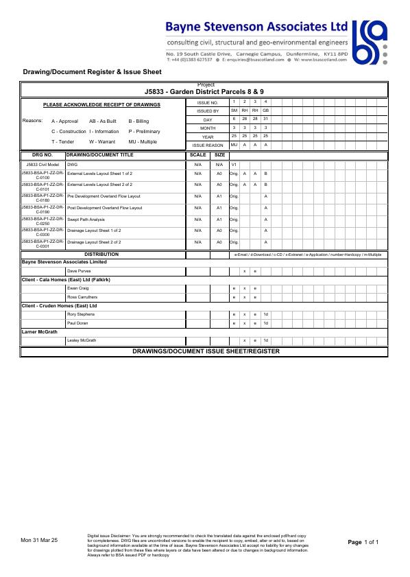 Detailed designs for Redheughs Garden District subsites 2,4 & 5: c.500 homes with streets, SUDS ponds and green corridors over a large west-Edinburgh site, fixing layout, landscaping and drainage. .
