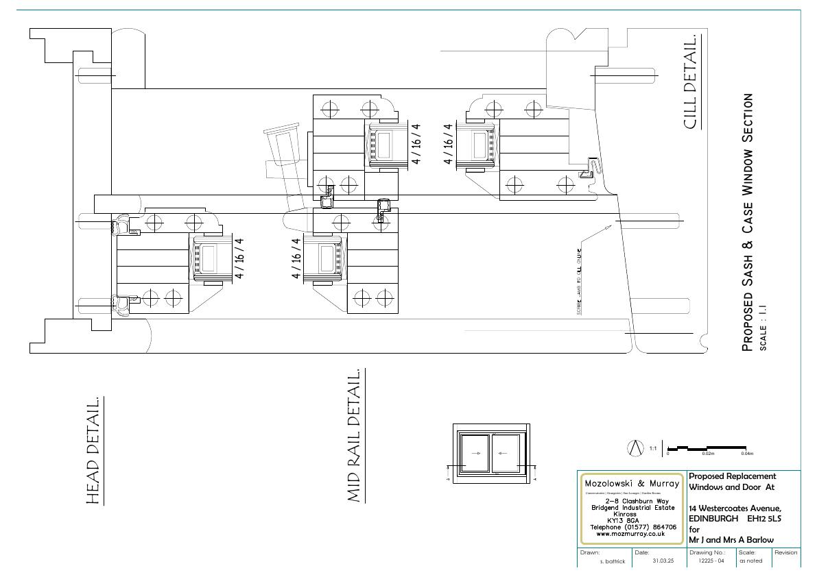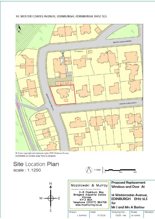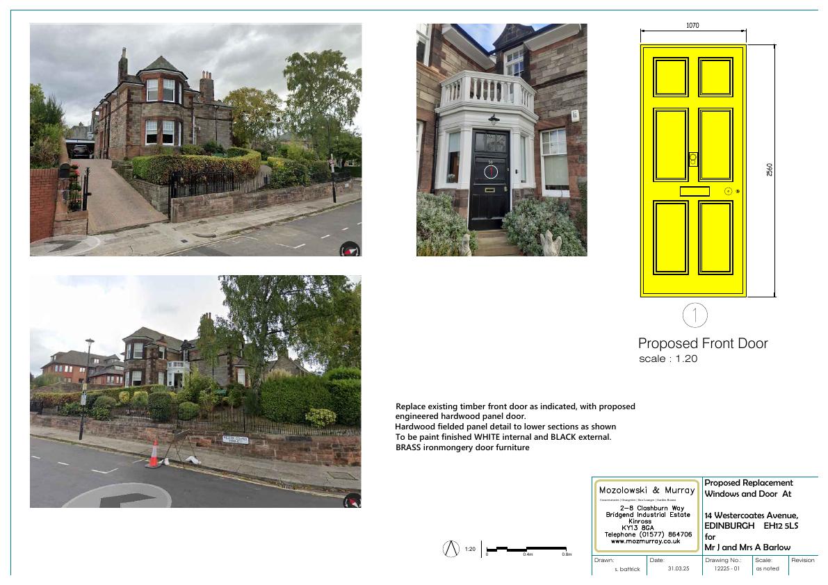 Detached villa at 14 Wester Coates Ave to receive like-for-like hardwood double-glazed sash windows and a black-painted hardwood front door; footprint and massing unchanged. .
