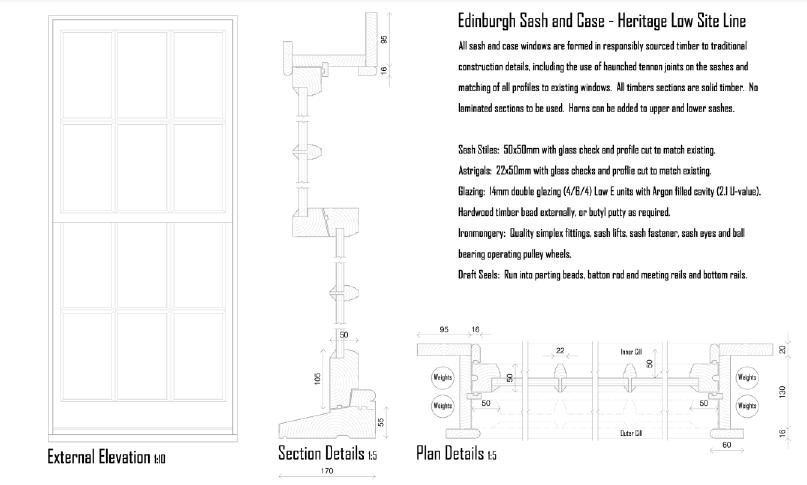 Replacement of existing single glazed sashes on a like-for-like basis with new sashes, custom-fitted with IGU's. All historical detail to be matched / reinstated. Existing cases to be refurbished in situ.