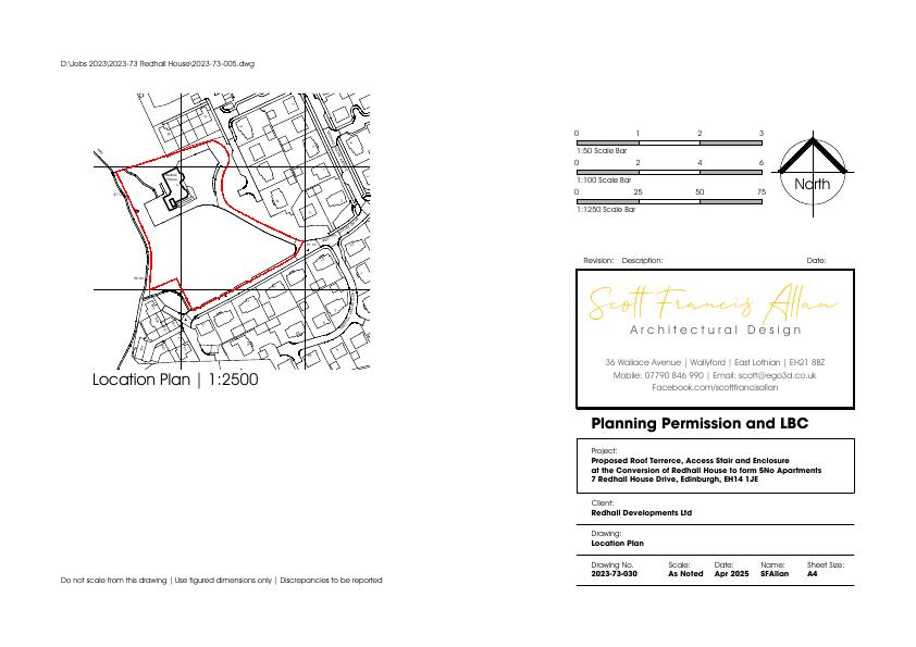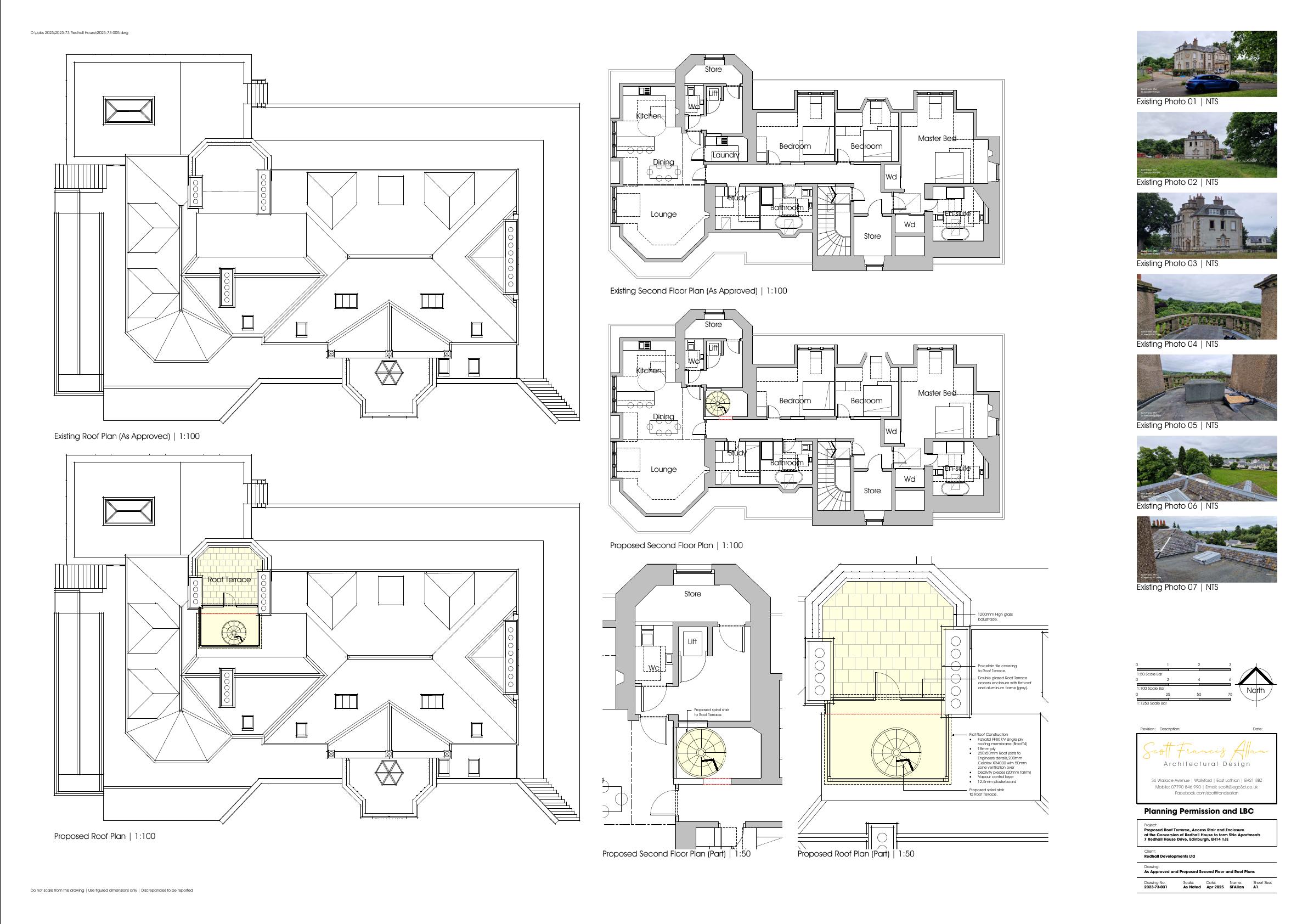 Roof terrace with glazed stair enclosure proposed atop Redhall House apartments, refining the approved roof design to create shared outdoor space. .