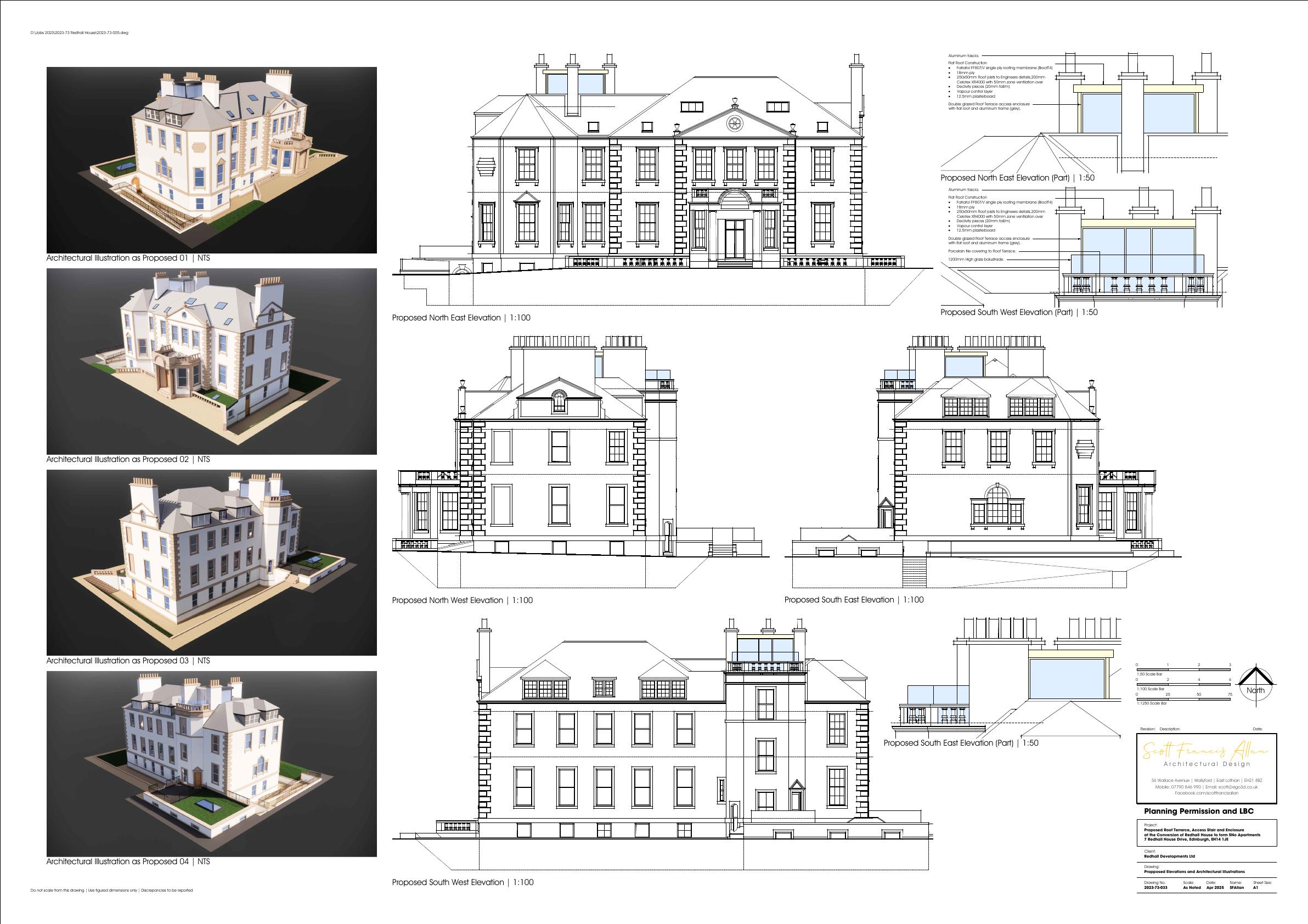 Roof terrace atop Redhall House with a small glazed stair enclosure; the rest of the Grade-listed building and its eight approved flats stay as is. .