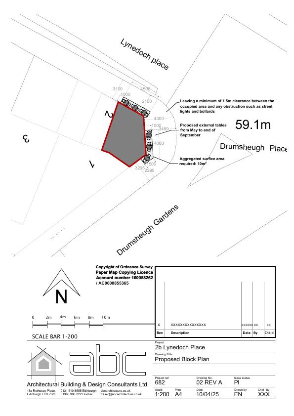 Corner caf at 2b Lynedoch Pl gets a black repaint, illuminated menu cases, slim canopy, discreet spotlights, small speakers and seasonal pavement tables, retaining a 2 m pedestrian clearway. .