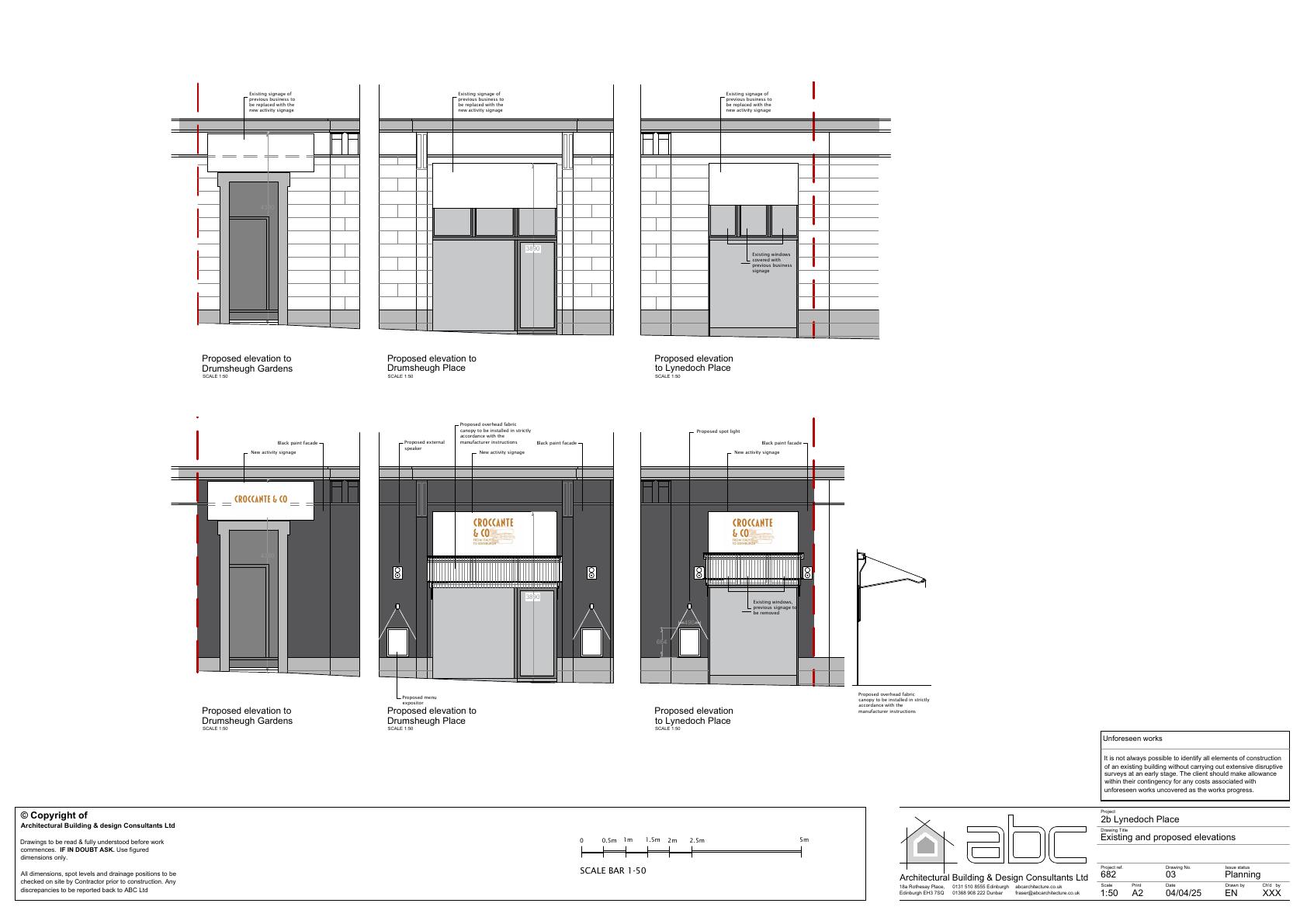 Corner caf at 2b Lynedoch Place adds a lit Crocante & Co fascia, small projecting box sign and slim canopy, updating the shopfront with no structural changes. .