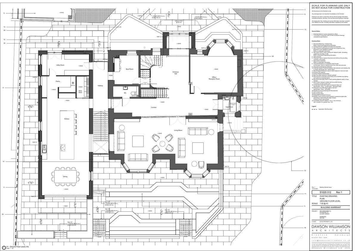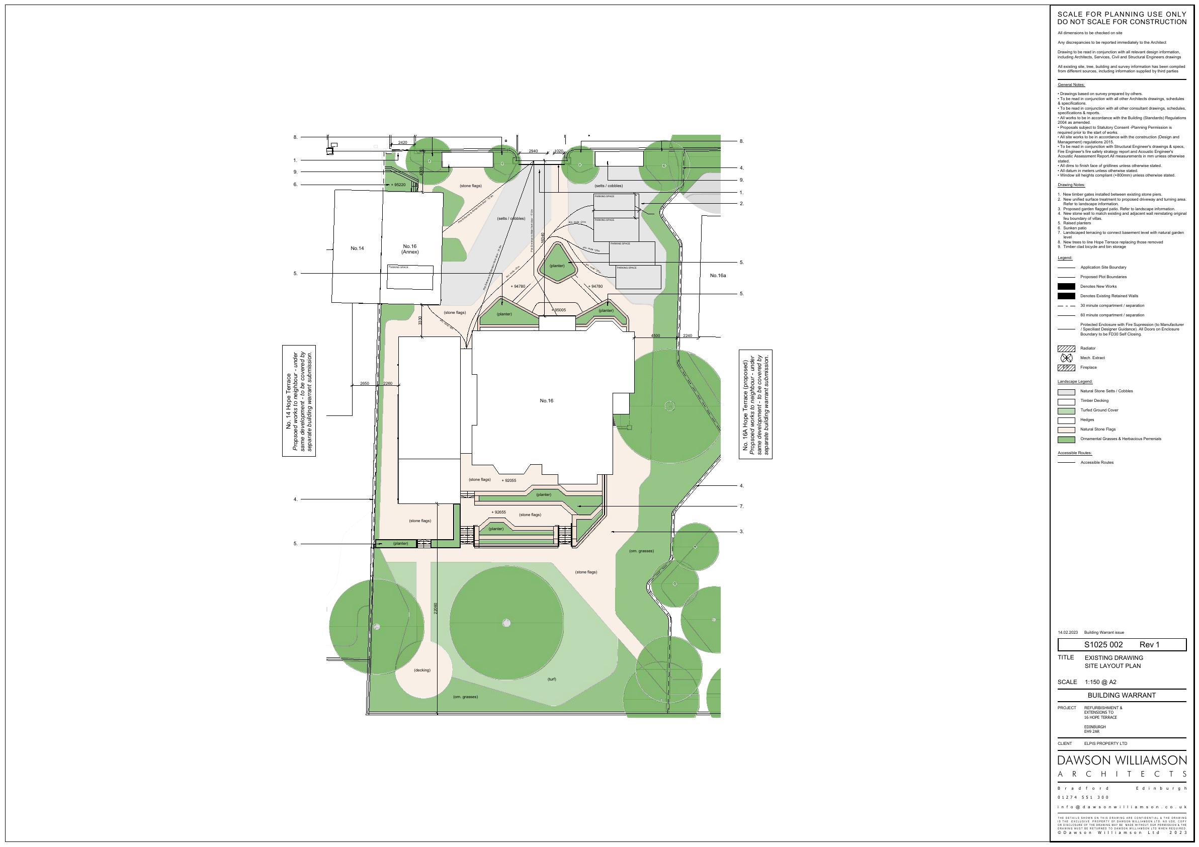 Boundary wall between 16 and 16A Hope Terrace shifted slightly east to protect copper beech roots; existing steel-supported bridging detail over roots retained. .