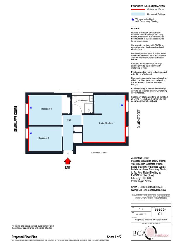 Top-floor listed Blair St flat to gain internal wall insulation on all exposed walls plus tilt-sliding secondary glazing, boosting energy efficiency with no exterior change. .