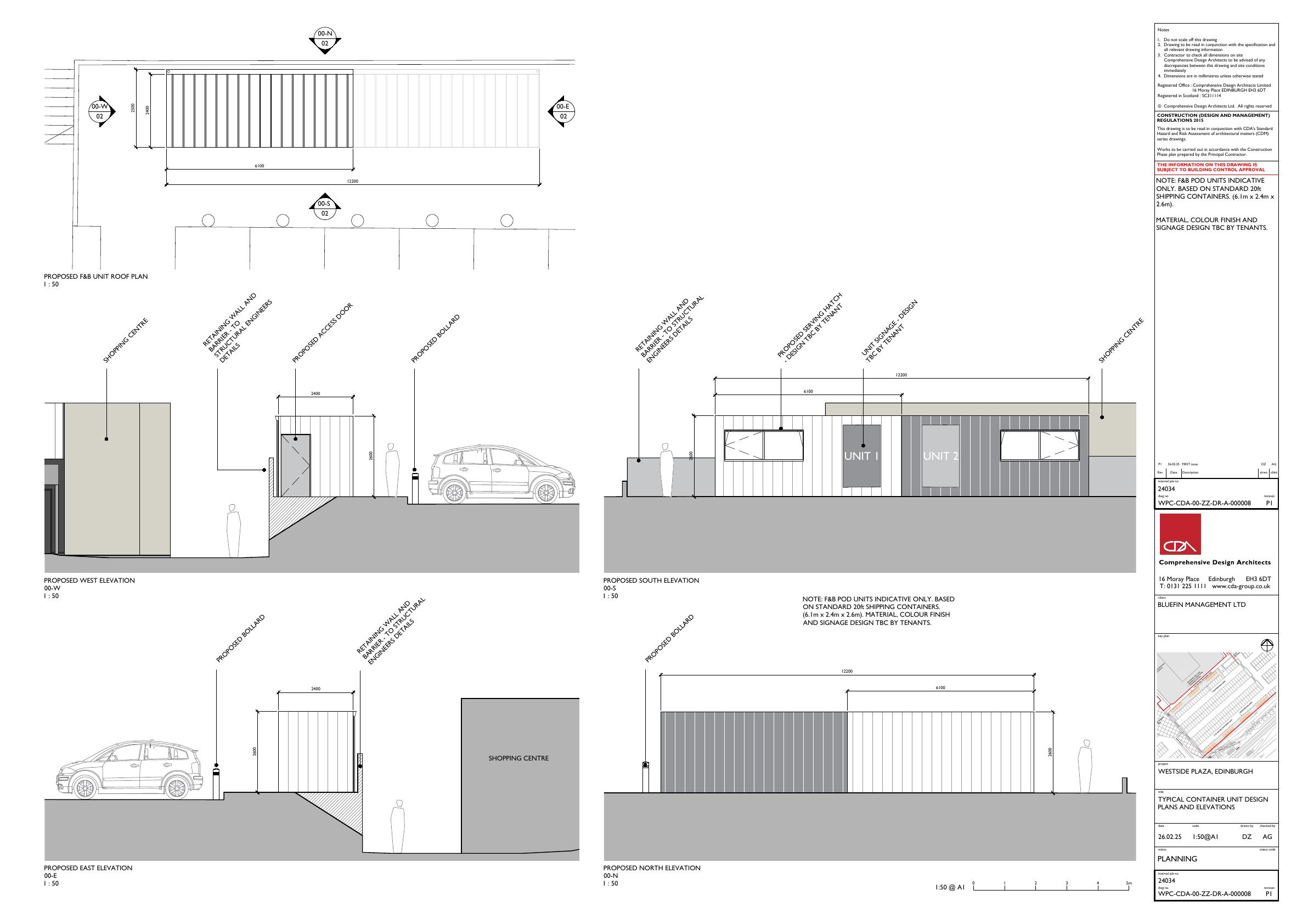 14 container-style food pods proposed in Westside Plaza car park, forming a 210 m cluster for hot-food and drink outlets. .