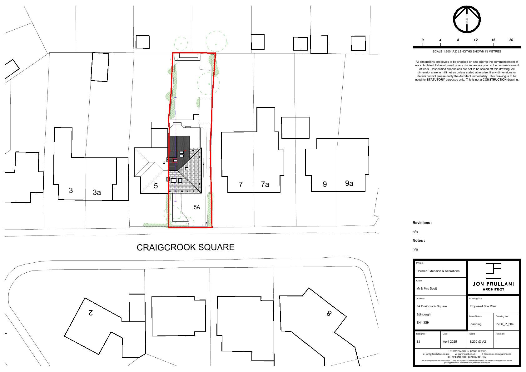 Flat-roof timber dormer on rear roof of 1-storey bungalow at 5A Craigcrook Square, plus loft fit-out and minor internal re-plan; footprint unchanged, no street-front impact. .
