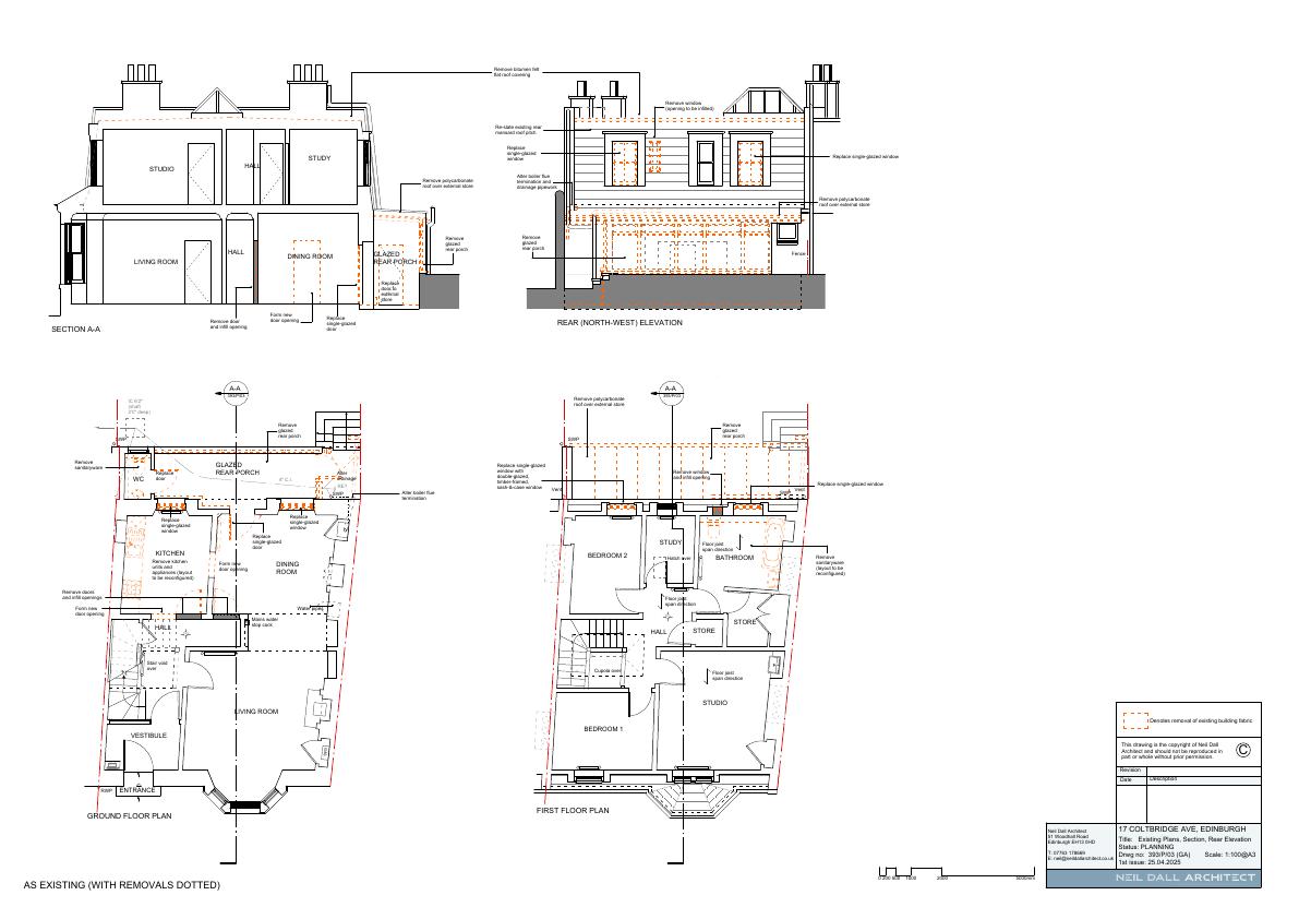 Remove glazed rear porch, form external courtyard and install glass balustrade. Add external wall insulation with render finish to part of rear elevation. Replace rear doors and windows, and carry out re-roofing works.