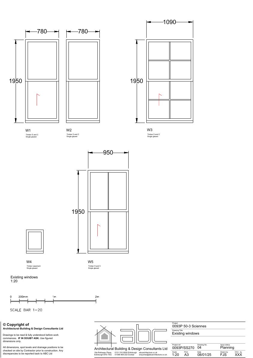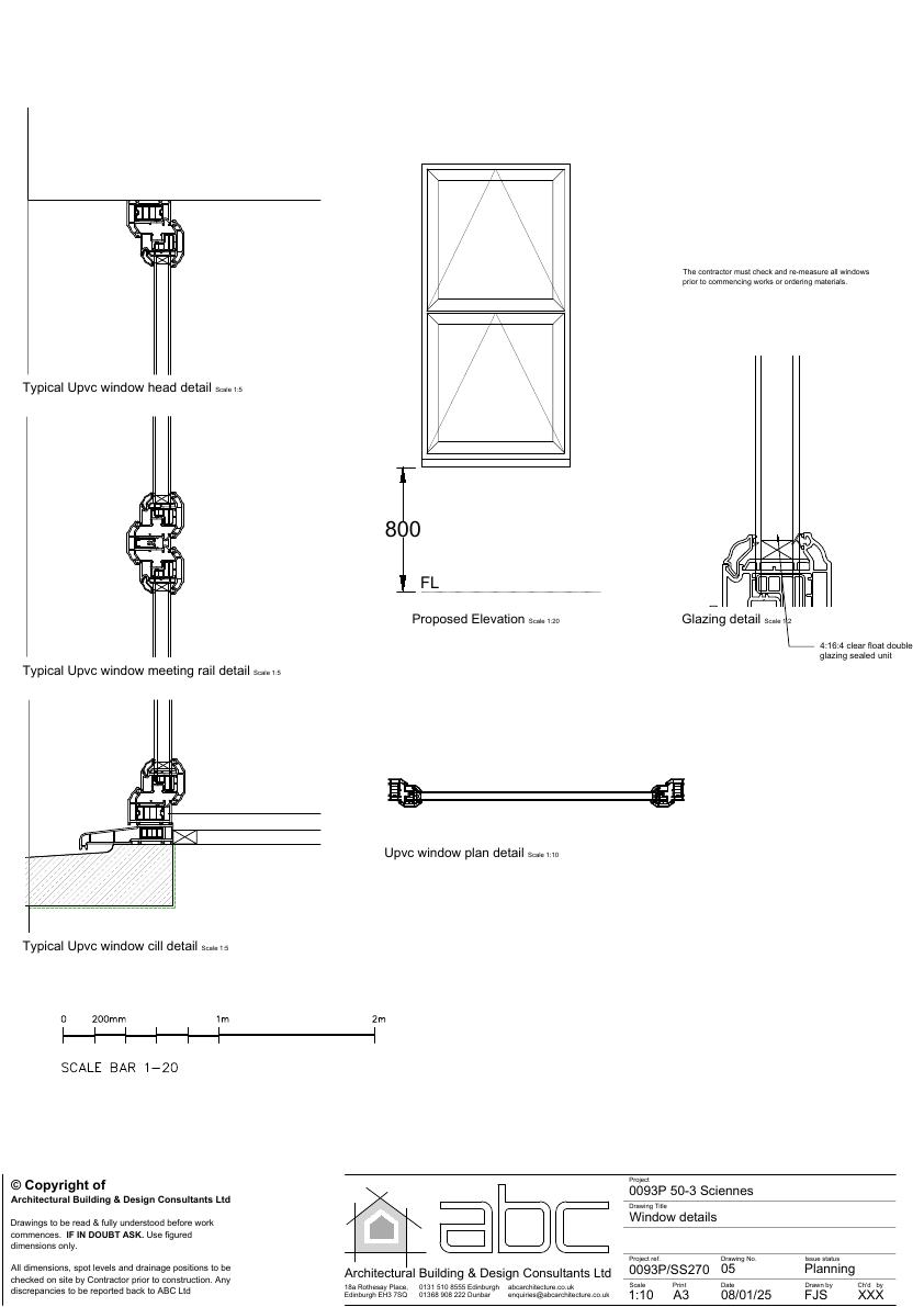 Replace five timber single-glazed windows at 50-3 Sciennes with energy-efficient white uPVC double-glazed casements; no alteration to openings or building footprint. .