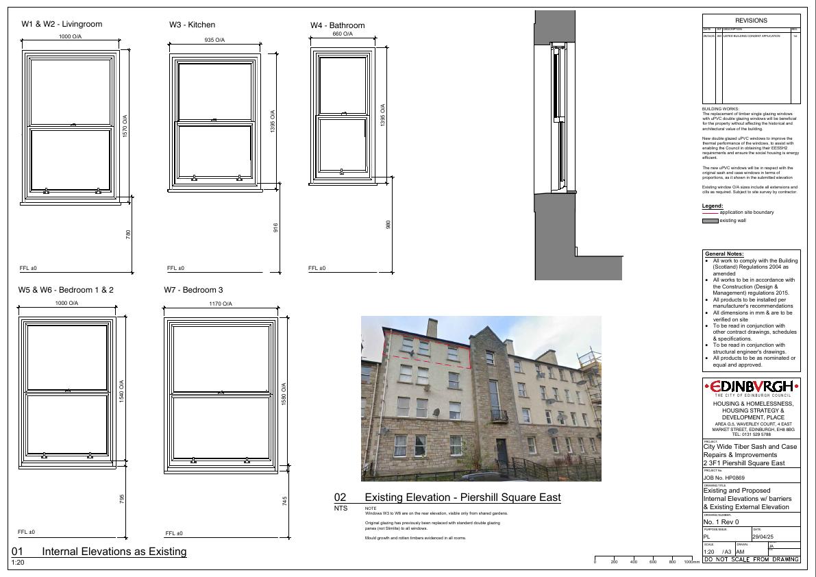 Works involve the replacement of poor-quality timber single glazed windows with new uPVC double glazed sliding sash & case windows. The new windows will improve the thermal performance, to assist with enabling the Council in obtaining their EESSH2 requirements and ensure the social housing is energy efficient without affecting the historical and architectural value of the building. The design of the proposed windows will be sliding sash and case windows with respect to the original frame design.
