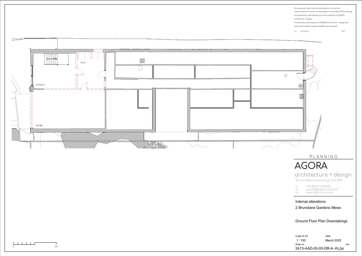 Reworks internal layout, turns the garage into living space and adds a new rear terrace; no change to building height or street frontage of the single-storey mews home. .