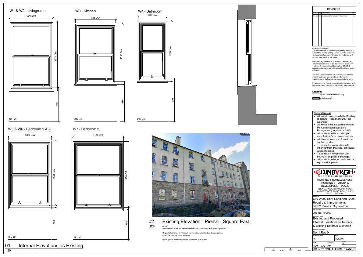 Works involve the replacement of poor-quality timber single glazed windows with new uPVC double glazed sliding sash & case windows. The new windows will improve the thermal performance, to assist with enabling the Council in obtaining their EESSH2 requirements and ensure the social housing is energy efficient without affecting the historical and architectural value of the building. The design of the proposed windows will be sliding sash and case windows with respect to the original frame design.