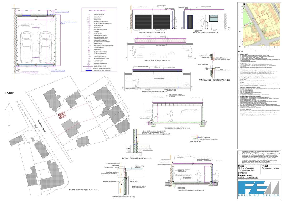 Flat-roof double garage (6 6 m) rebuilt on the same footprint, matching height and access, with upgraded masonry walls and insulation. .