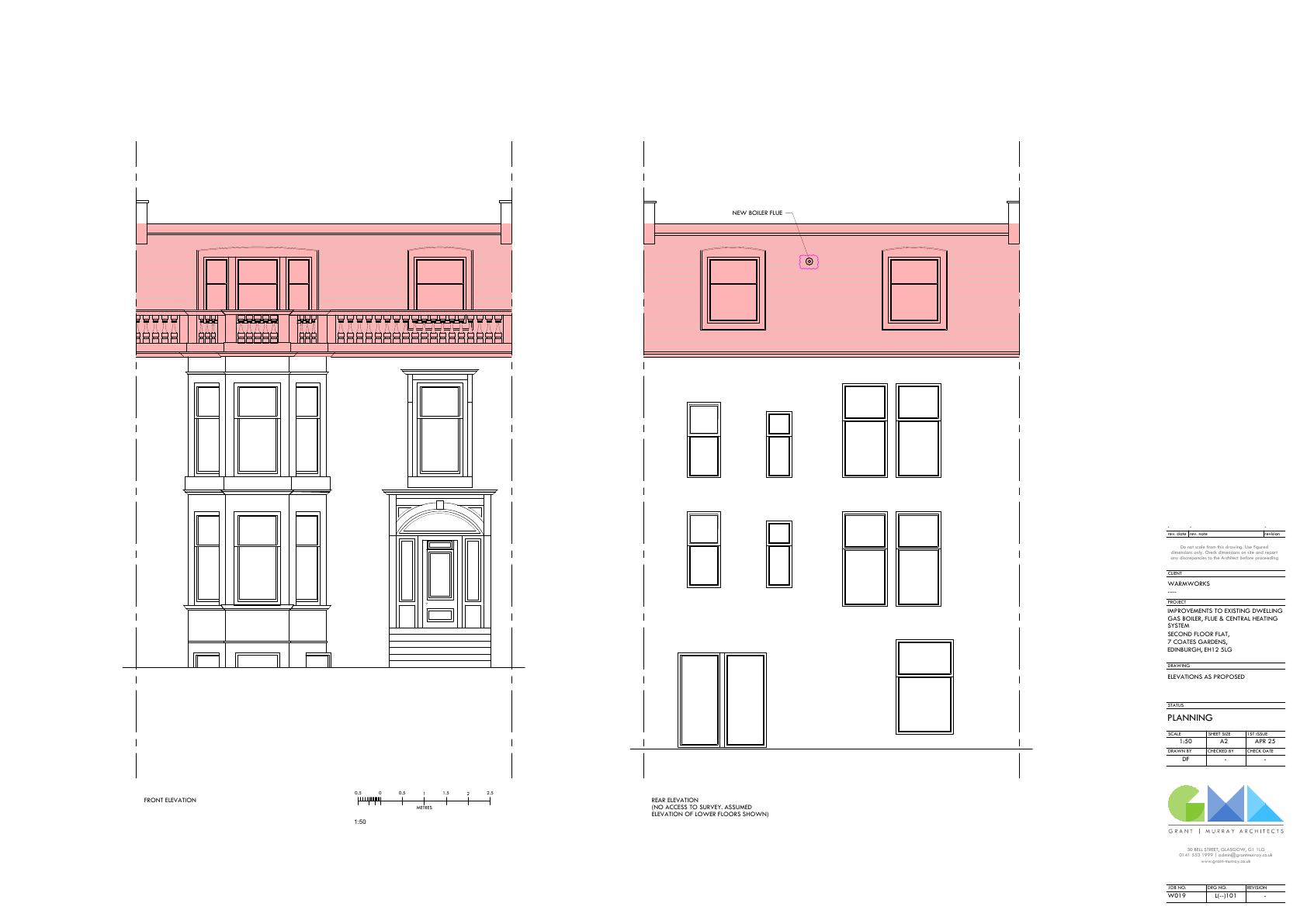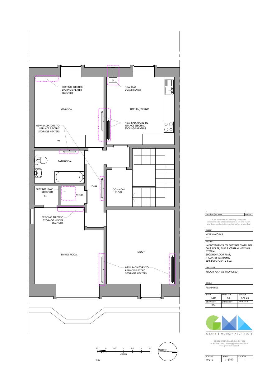 Improvements to an existing flatted dwelling (B Listed). Proposals include the installation of a new gas combi boiler and flue, and new radiators to replace existing electric storage heaters.