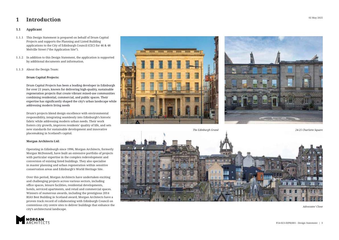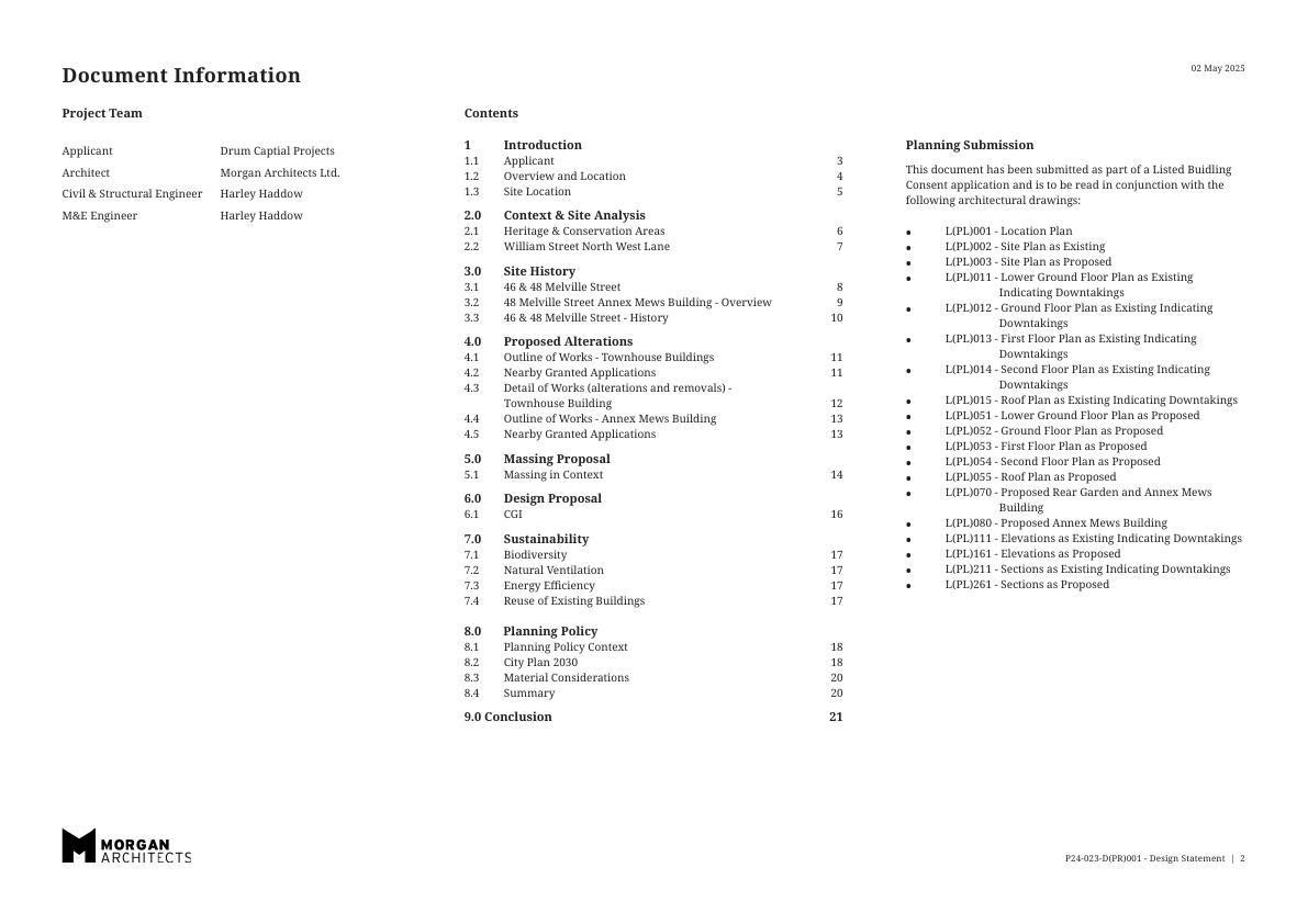 Conversion of existing office spaces at 46 and 48 Melville Street back into residential use, subdividing No. 46 into three distinct residential units with No. 48 reinstated as a single townhouse. Additionally, the construction of a new annexe mews building to rear of No. 48, accommodating a garage at ground level with living quarters above.