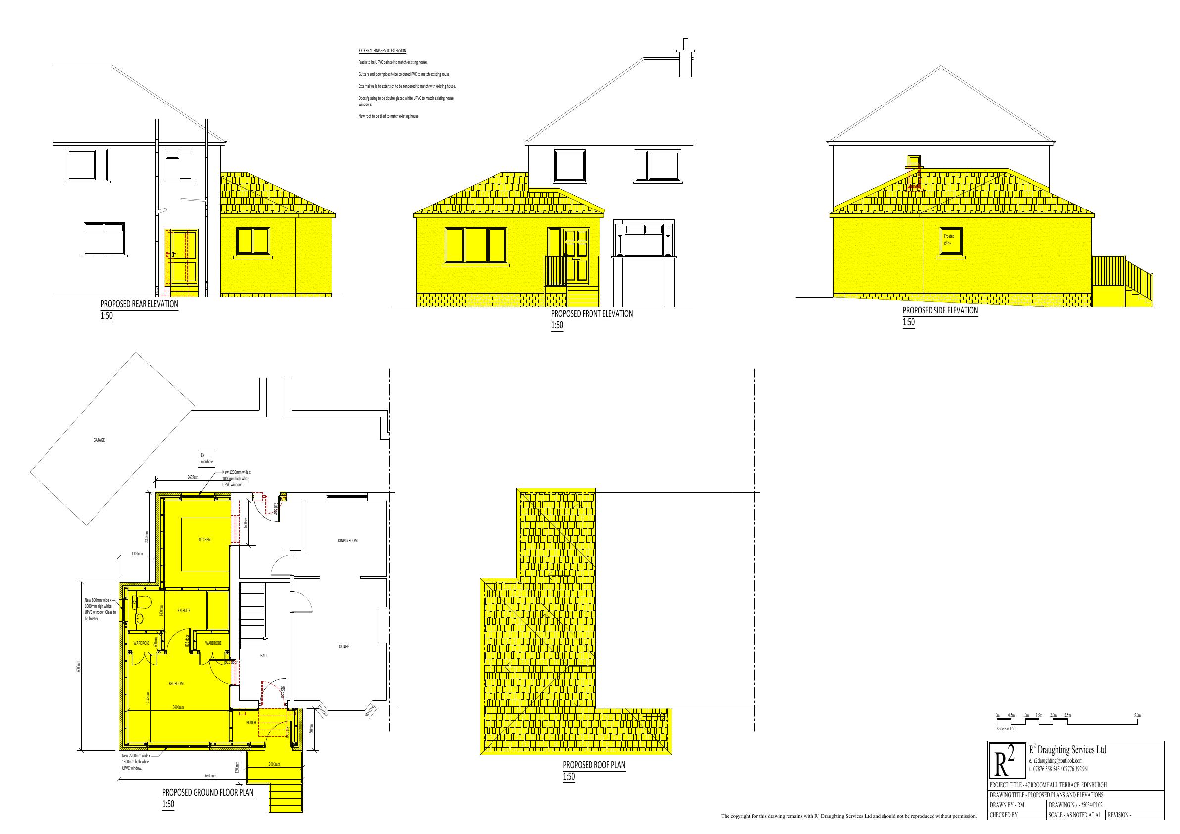Single-storey wrap-around side/front extension creates new bedroom, en-suite, bigger kitchen and ramped entry to the detached house on Broomhall Terrace. .