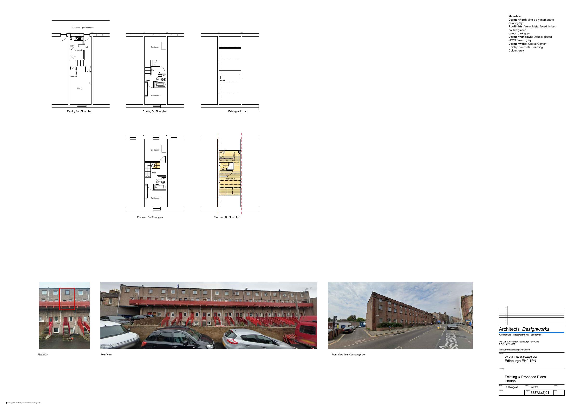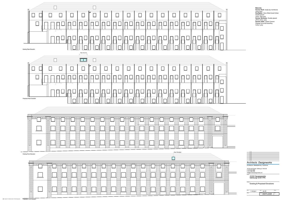 Rear box dormer and single front rooflight to mid-terrace flat on Causewayside, enlarging loft for an extra bedroom; modest tweak to the roofscape with limited street-view impact. .