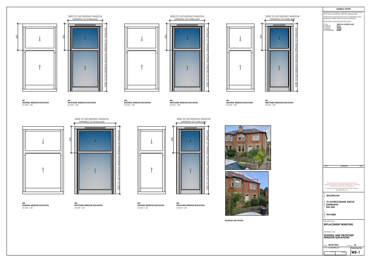 Timber sashes at 10 Laverockbank Grove will be replaced with double-glazed uPVC sliding units, matching the original bays but improving energy performance.