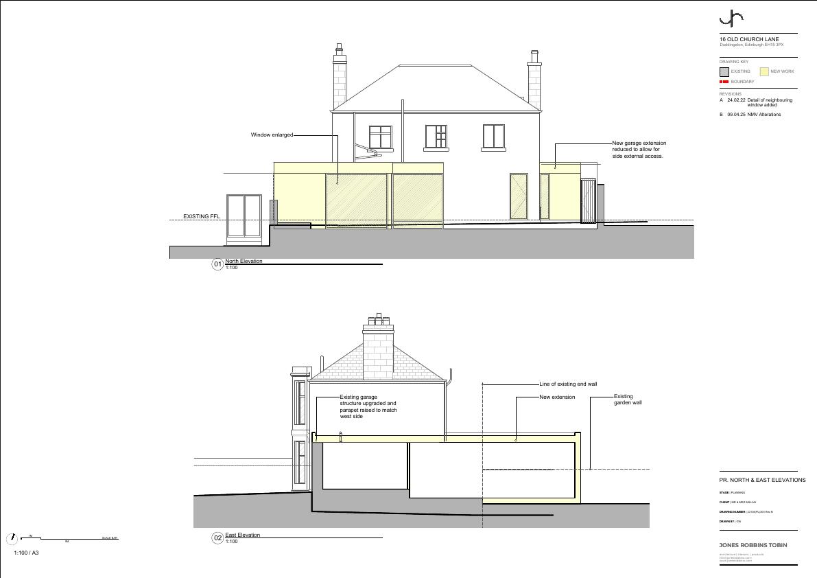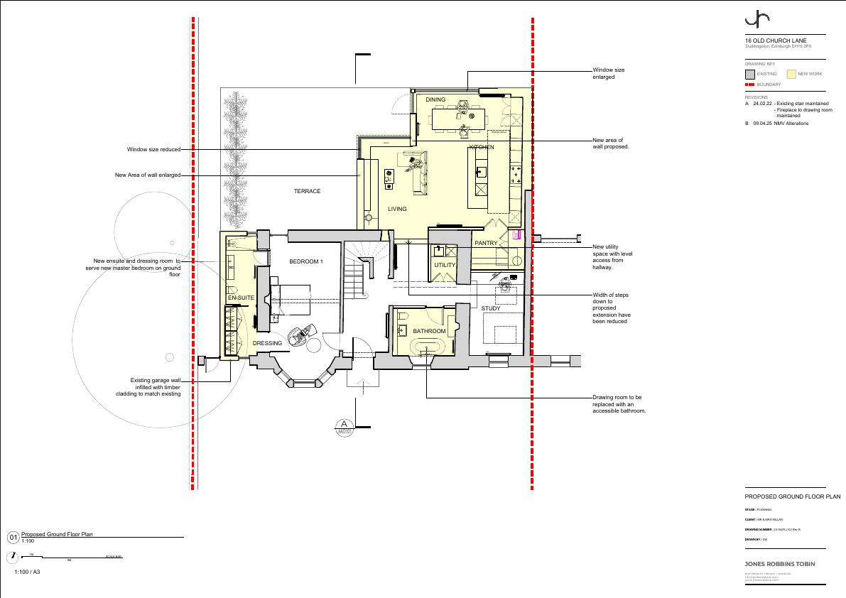 Listed Old Church Lane house to gain single-storey rear/side extension; garage becomes open-plan living space, first-floor walls removed for larger rooms, new master en-suite added. .