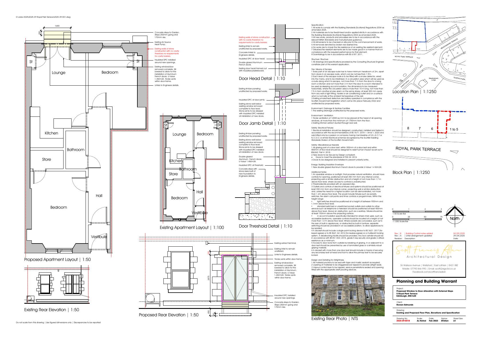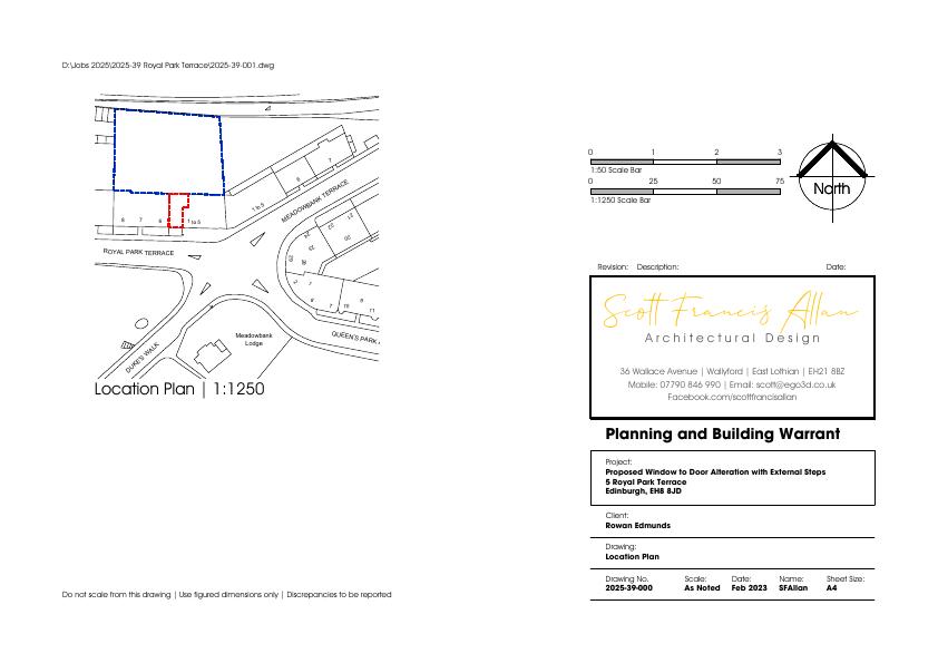 Rear window at 5 Royal Park Terrace becomes glazed double doors with new stone steps to garden; minor structural tweaks inside, no impact on street frontage. .